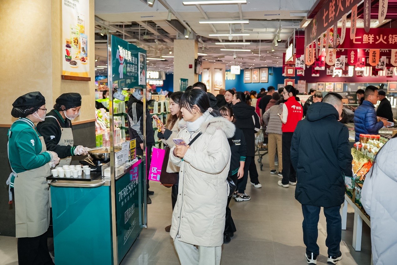自去年12月开业以来,京东七鲜裕华万达店始终人气不减,已成为市民体验品质消费、选购特色商品的热门目的地。店内目前有十余个试吃点位,涵盖时令水果、新鲜烘焙、特色熟食等丰富品类,将充满互动感的消费体验持续至整个春节。试吃不仅直观展示了商品品质,更营造出浓厚的节日氛围与温暖的购物场景,有效拉近了与消费者的距离。许多顾客从“尝鲜”开始,逐渐发展为通过线上下单、享受即时配送的忠实用户,线上线下消费闭环再进一步打通。