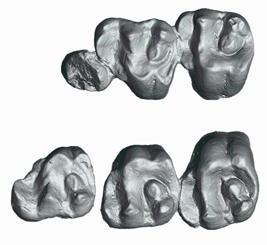 “粗壮豫鼠”的牙齿化石CT扫描和三维重建图。(中科院古脊椎所供图)